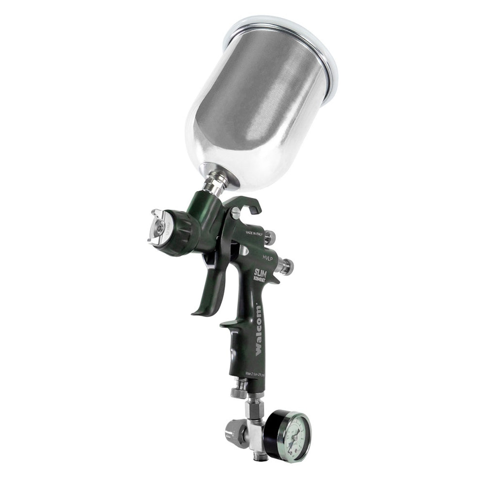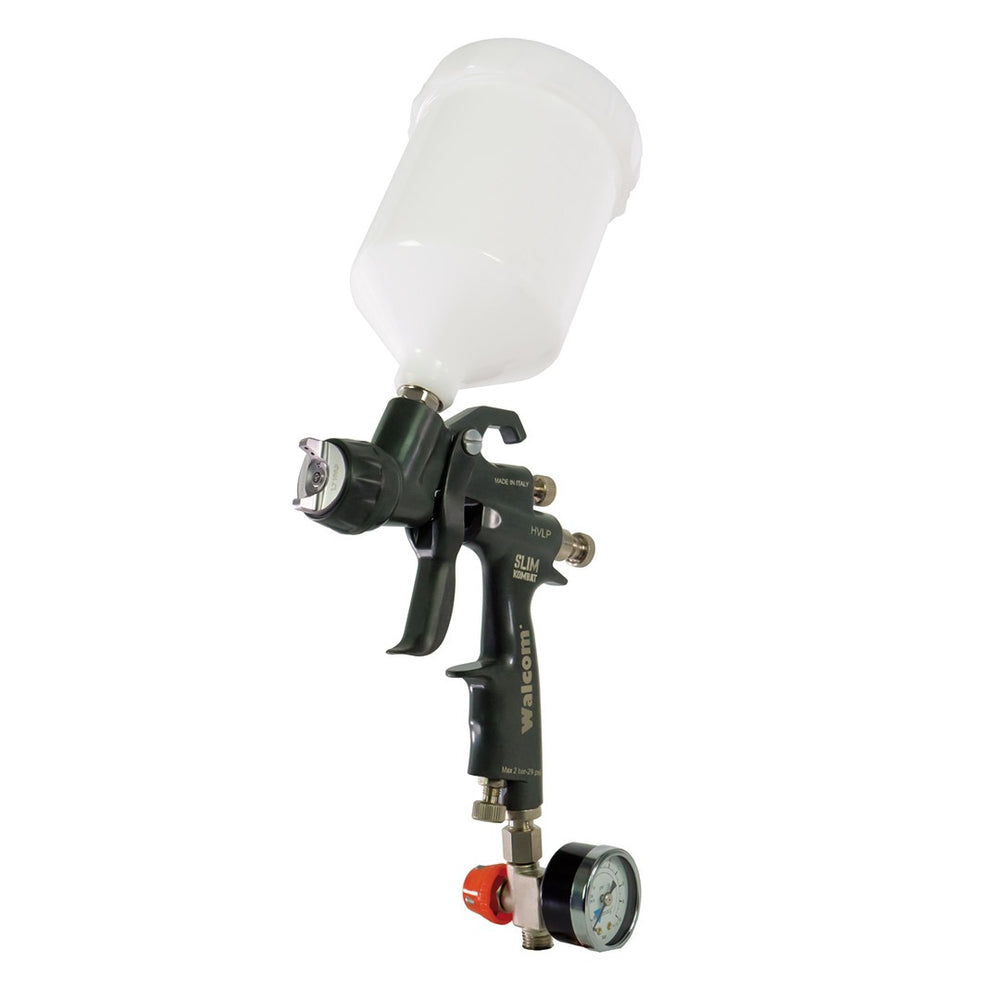 For over a decade SLIM has been synonymous with quality, reliability and versatility, appreciated all over the world of painting: from Car Refinish to Industry, to Woodworking. Today we introduce the Slim KOMBAT, a new, unique and revolutionary version of the spray gun that has made the history of Walcom®. Slim KOMBAT is incredibly light 381g , it breaks the rules, abandons the classic aluminum body and presents itself with an innovative magnesium body, injected with Kevlar® fiber (PAT. PENDING) Slim KOMBAT is available in 3 versions: HVLP, HALO, HALO SR, which share the same air consumption (220-260 l/min), high transfer efficiency (over 81% for primers and 70% for bases and clear) and for the atomization quality.
